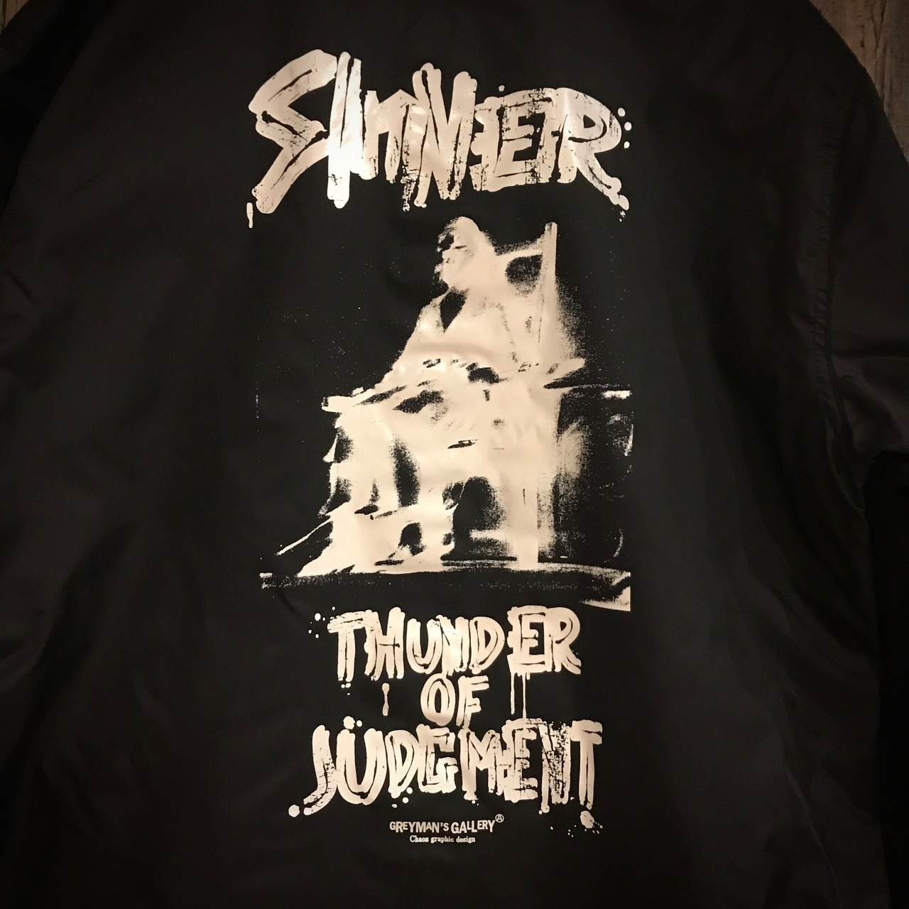 電気椅子のグラフィックはヴィンテージのパンクフライヤーにも使われている物で、実際の警察資料を加工して作っているため、かなり雰囲気出ています。