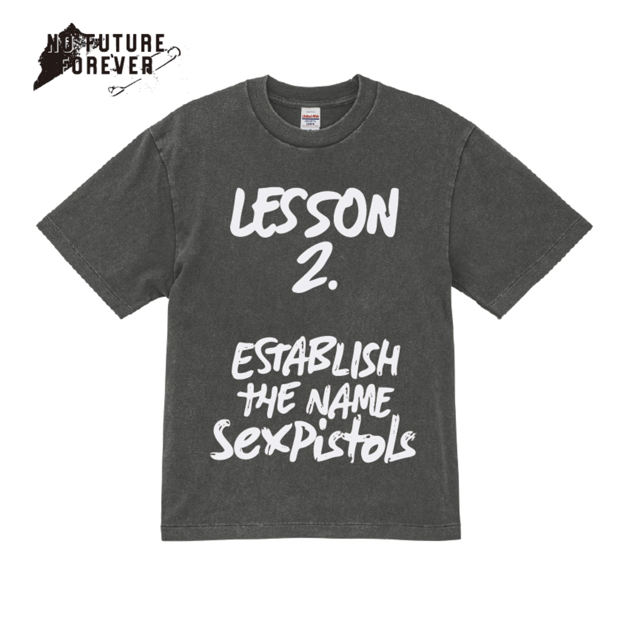 SEXPISTOLSの映画「「The Great Rock 'n' Roll Swindle」の中でスー・キャットウーマン役を演じたジュディ・クロールの裸体に書かれたメッセージをN.F.Fがアレンジ!当時のヴィンテージフライヤーやZINのような手書き風フォント、そして上下に分かれているデザインのバランス・ワードセンスなどデザイナーである半沢氏のセンスが光ります。