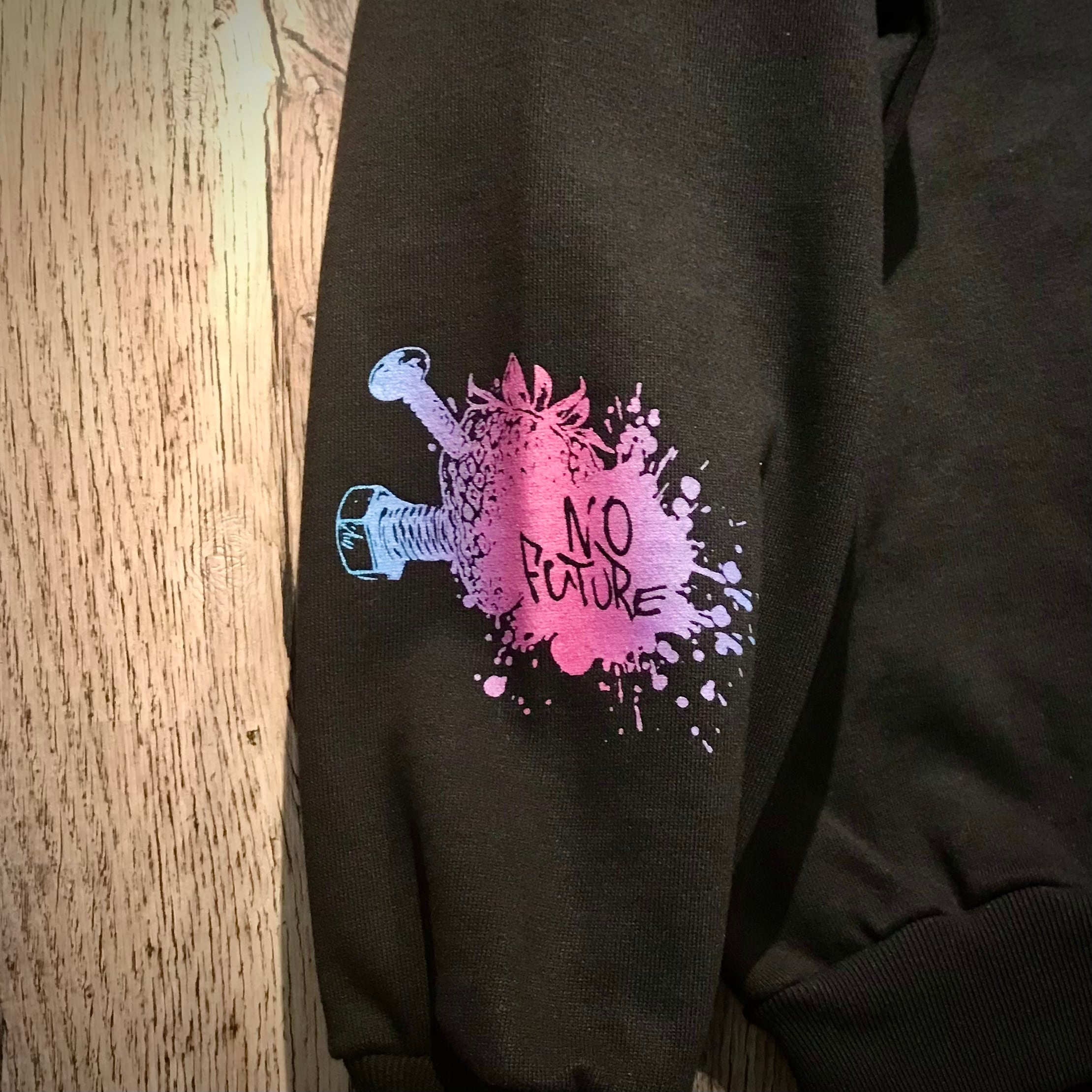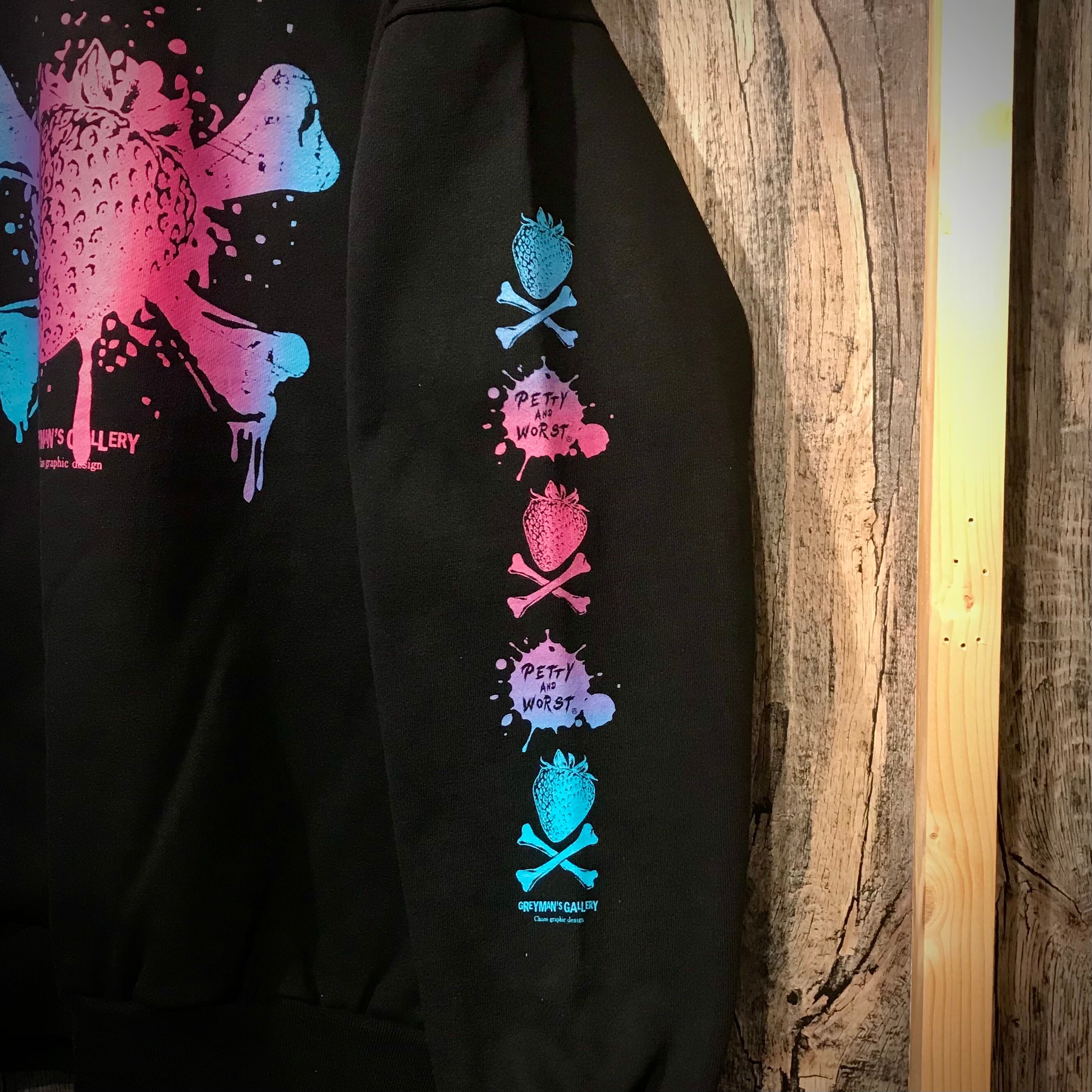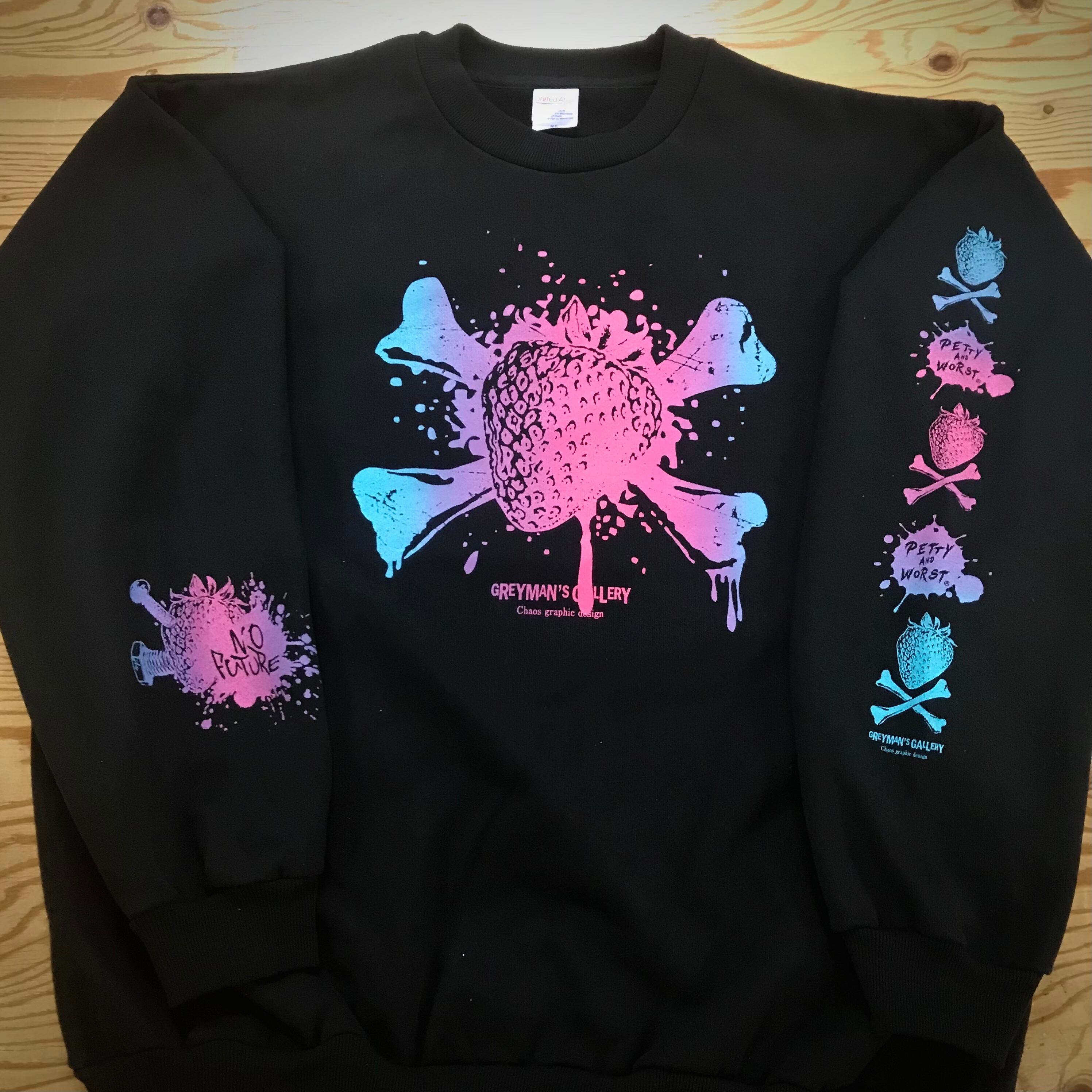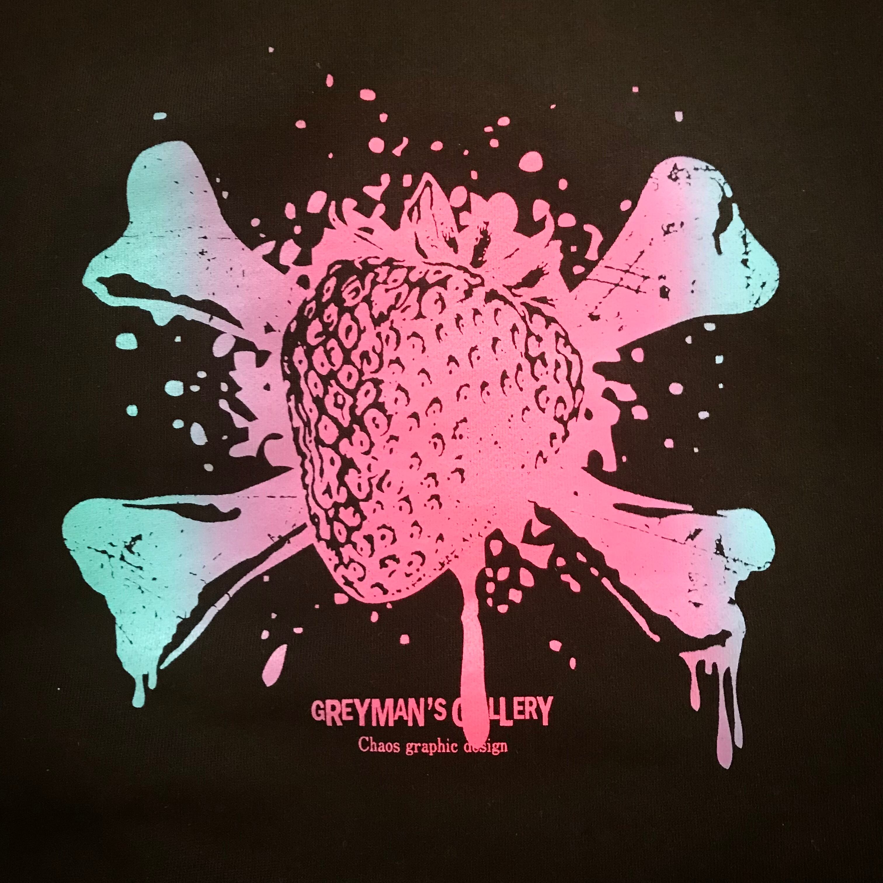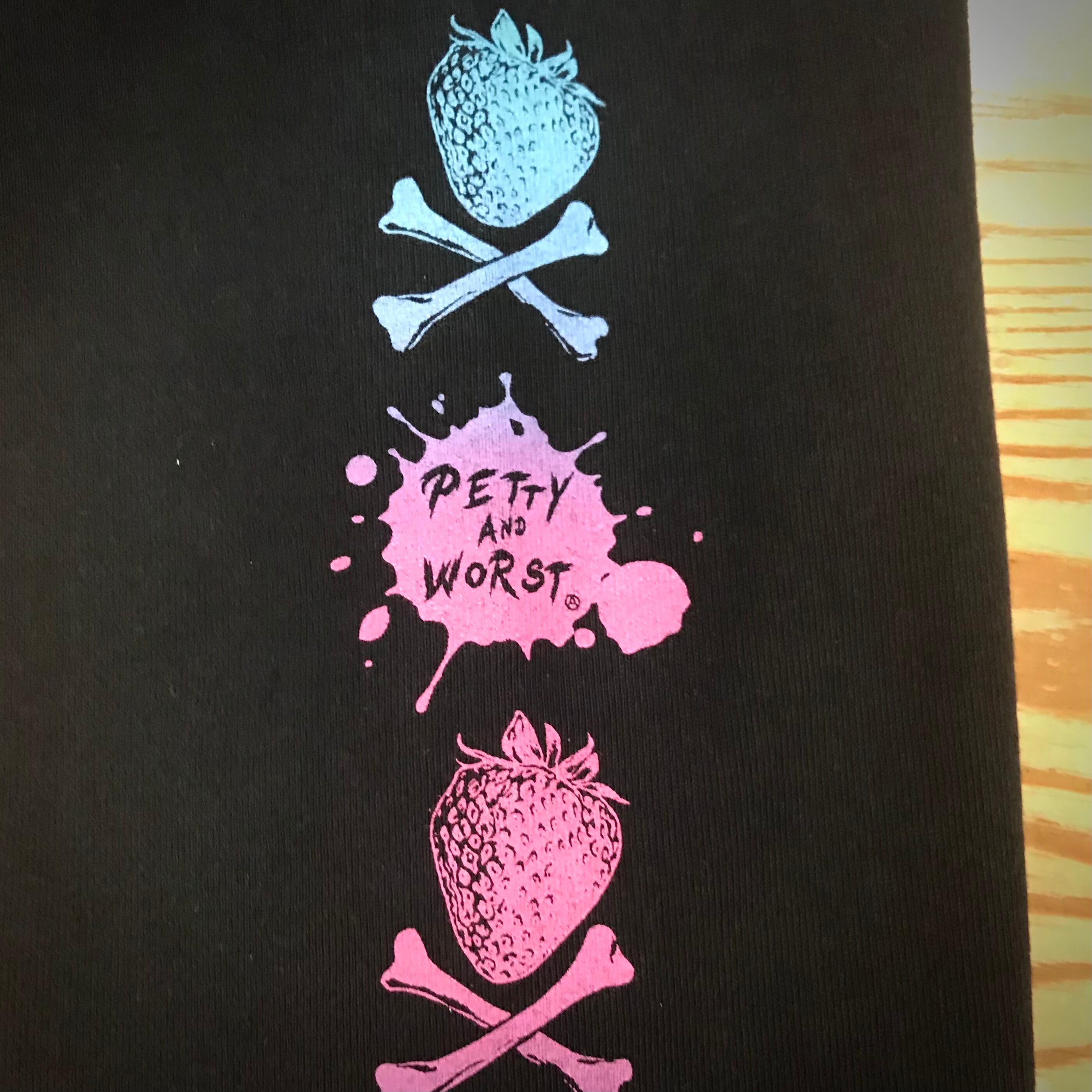 ストロベリー+クロスボーンのデザインをゆめかわいい系のグラデーションインクでプリントしました。