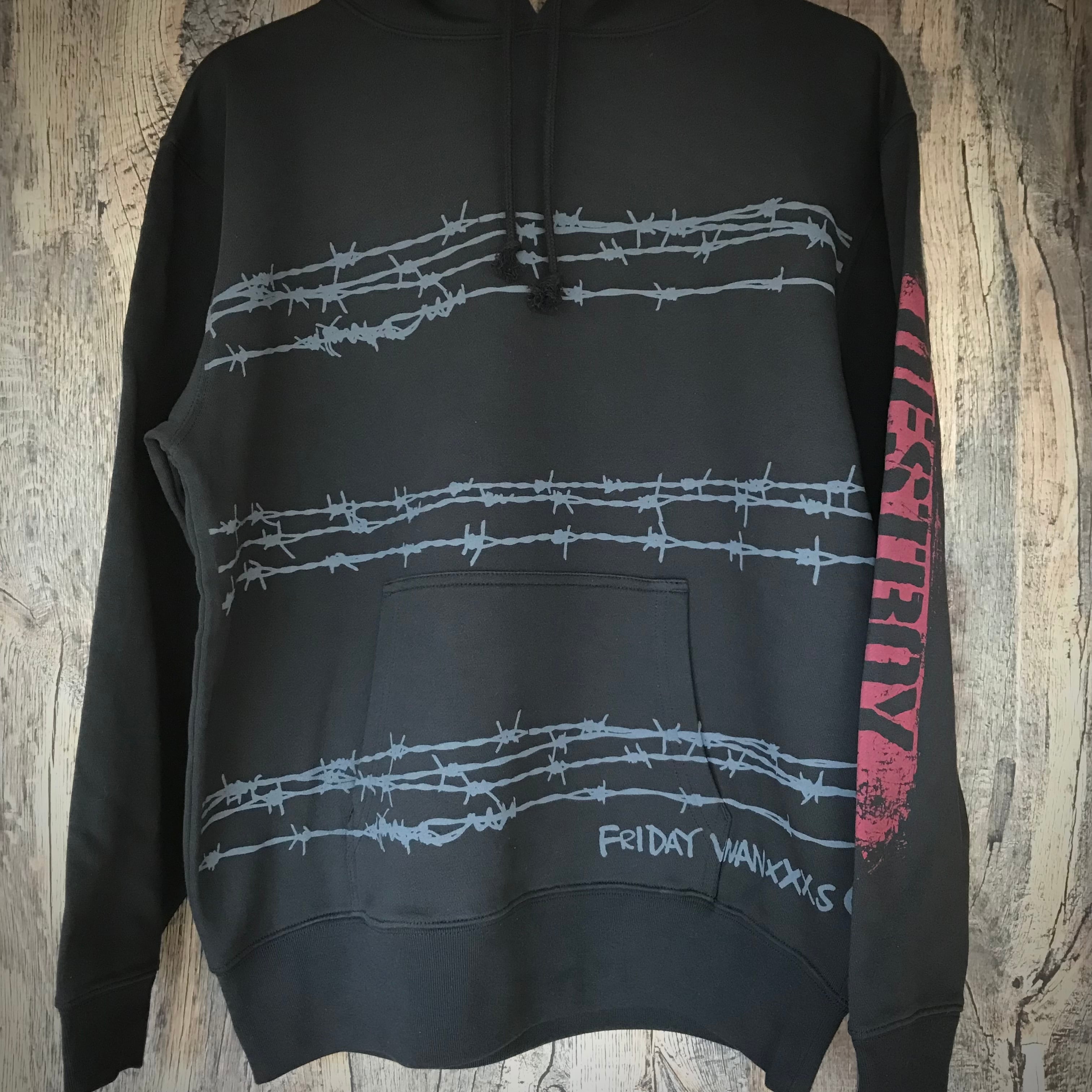 有刺鉄線デザインを特大シルクスクリーン版でパーカー全面にプリントしたスペシャルウェアです。